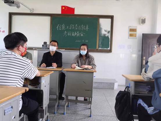 5月20日上午信息工程系在442教室组织2017级计算机高职专转本学生召开考前动员会。本次考试有9人参加专转本考试,是历年来最多的一次,系部三位主任分别讲话。本次会议的主要内容为对学生的考前状态调整,考试中纪律要求,防疫相关要求,考试心理调节等方面,并要求送考教师要做好考生的后勤服务工作。