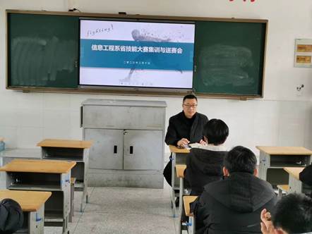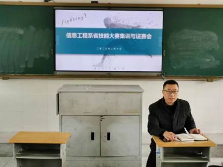 2月10日下午系信息工程系组织本系部省技能大赛赛选手和指导教师,在441召开技能大赛集训与送赛会,本次会议由系部王海峰主任主持。王主任要求选手和指导老师在剩余的时间里,继续努力,尤其是理论方面要更加努力。其次,王主任对参赛前准备工作提出了要求,保险、身份证等要提前装备好。接着,他又对参赛时的安全提出要求,要平安出行,到比赛场所后集体行动,按照办赛方要求参加比赛。