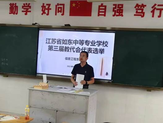9月13日上午系信息工程系在443教室组织系部全体教师召开第三届校教师代表大会代表选举会议,会议由系部主任王小兵主任主持。教师代表大会是教职工行使民主权利,参与学校民主管理和民主监督的基本形式和制度,是学校管理体制的重要组成部分。