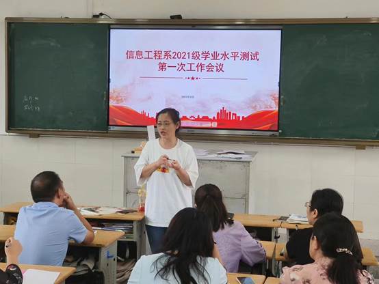 9月13日上午系信息工程系组织21计应班学测相关课程任课老师,在443教室召开学测第一次工作会议,会议由系部教学主任朱晔主任主持。本次会议中,朱主任对本学期学测复习工作提出了“抓重点、定策略、辅培优”九字方针,希望各位任课老师抓好重点学生和重要考点;根据学生特点有针对性的确定教学策略,优化学生学习方案;对于参加职教高考的部分学生要提高要求,依据职教高考考试大纲采取分层教学,辅助开展培优工作。