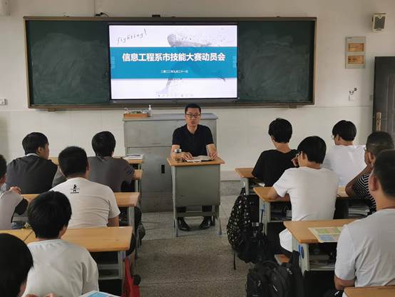 9月21日下午,信息工程系组织本系2022年市技能大赛参赛教师与学生,以及指导教师,在441教室召开2022年市中职生技能大赛动员会。本次大赛系部将组织7名教师和20余名学生,参加信息技术大项中网络安全、影视后期等五个项目的比赛。会议由系部王海峰主任主持。会议的主要内容为王海峰主任对参赛选手和指导老师提出了要求。他要求指导教师要有计划、有步骤、有重点地组织选手进行赛前集训,参赛选手要有针对性的进行训练,不断磨炼自己的技能,不怕重复反复锤炼,提高自己的熟练程度。同时,他还对集训的时间、纪律和安全方面提出要求,希望通过这次动员会,让系部所有参赛选手能平安、有序地参赛并获得优异的成绩。